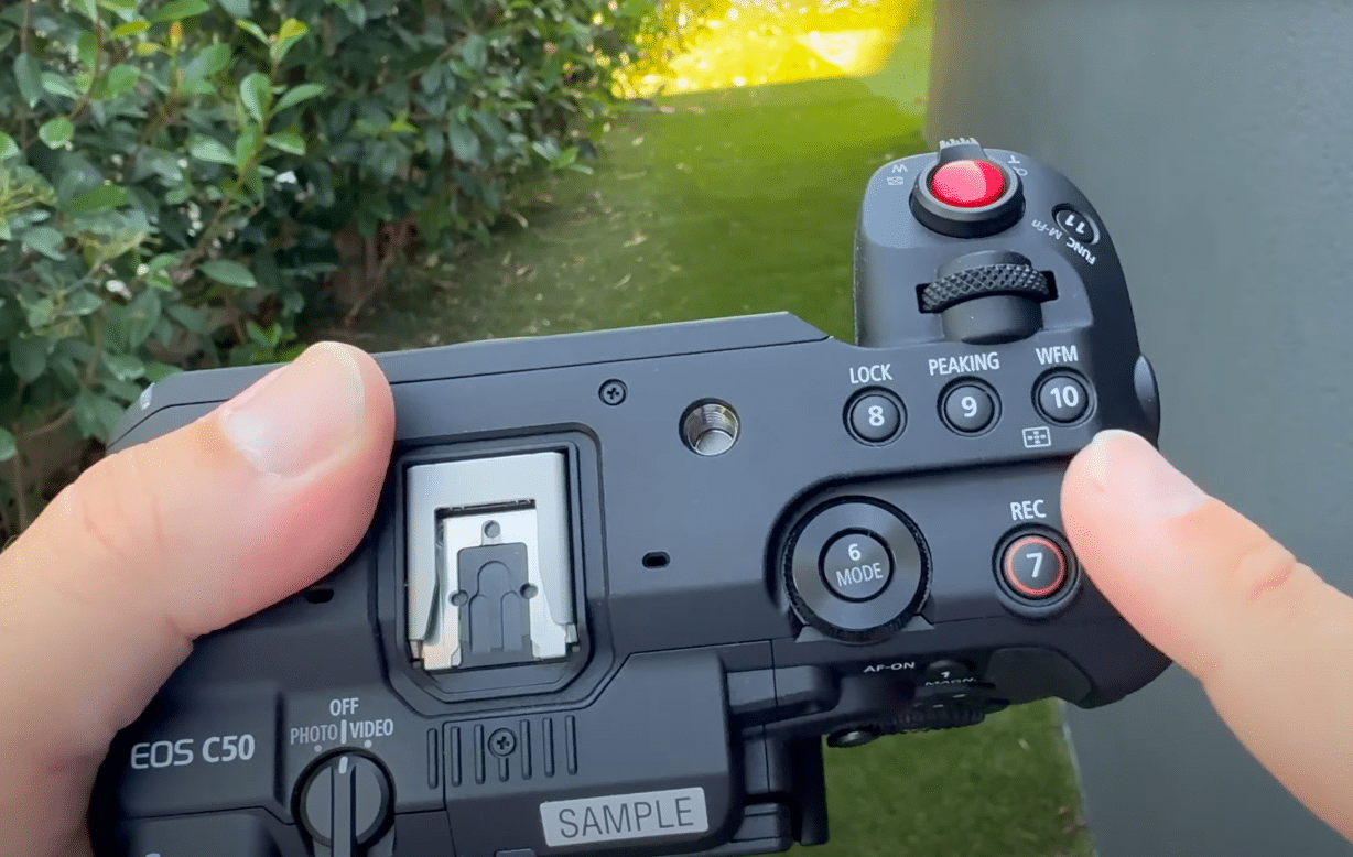 La caméra Canon C50 possède pas moins de 14 boutons programmables répartis un peu partout, tous assignés à des fonctions vidéo. Canon a vu large :
