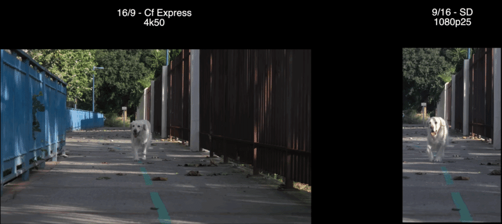 La grande nouveauté de cette Canon C50, c’est l’Open Gate en 7K25. Il permet de filmer sur toute la surface 3:2 du capteur, avec la possibilité ensuite de récupérer un plan en 16:9 pour l’horizontal et en 9:16 pour le vertical, le tout à partir de la même prise.