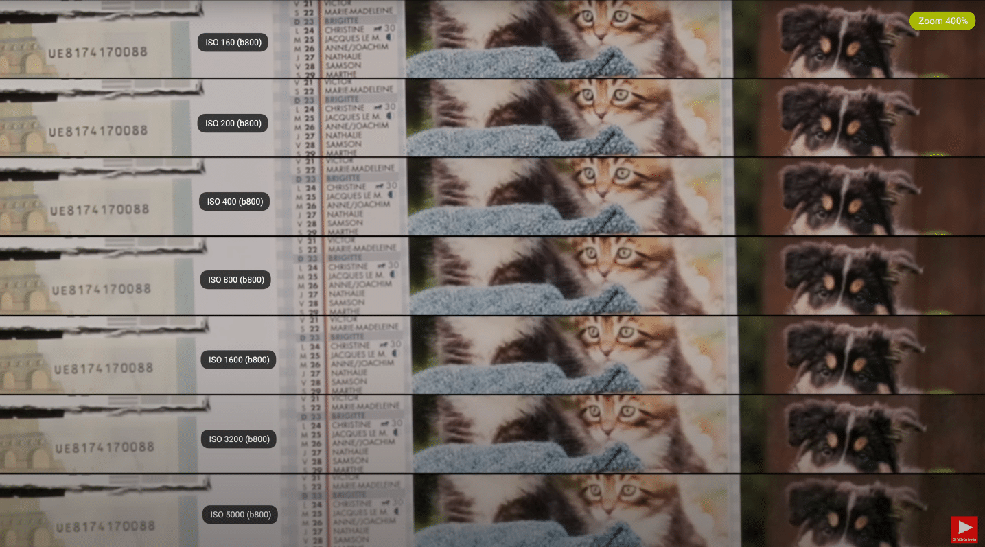 - en base 800, on peut descendre jusqu’à ISO 160 et c’est excellent jusqu’à ISO 1600 ;