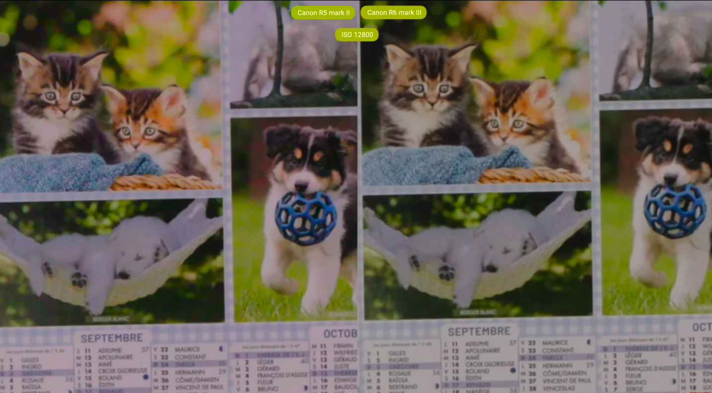 Les plans sont largement acceptables jusqu’à 12800 ISO. On n’a pas besoin de faire une grosse réduction du bruit. La gestion du bruit est légèrement meilleure que sur le R6 Mark II, et on a plus de détails même à 12800 ISO.