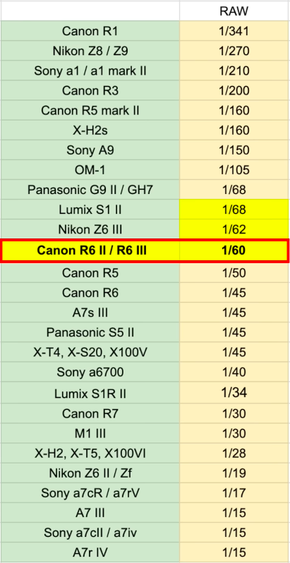 Même constat pour le rolling shutter : on est sur 1/60 s, soit ce qui se fait de mieux sans capteur empilé. D’ailleurs, c’est presque identique aux performances des capteurs semi-empilés de Nikon ou de Lumix. Canon a augmenté la définition, mais je n’ai observé aucun effet de bord ni aucune dégradation par rapport aux 24 Mpx.